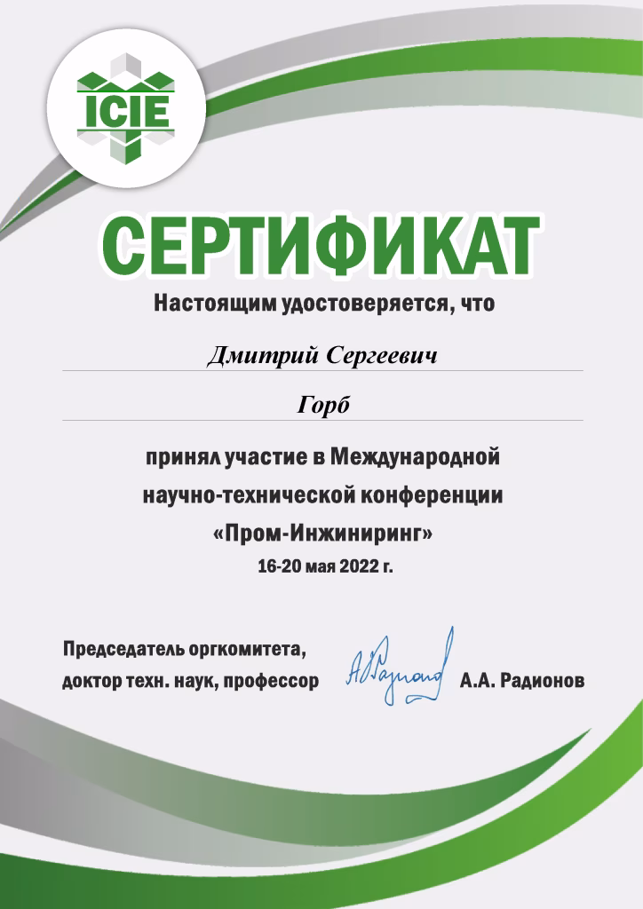 Сертификат участия в Международной научно-технической конфиренции